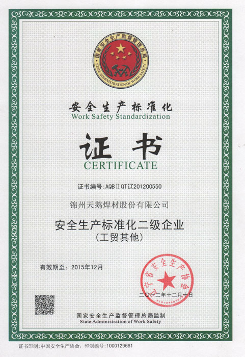 安全生產(chǎn)標(biāo)準(zhǔn)化二級企業(yè)