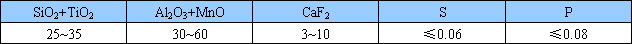 JH-SJ501是采用引進(jìn)瑞士奧利康焊接工業(yè)公司專有技術(shù)和設(shè)備生產(chǎn)的燒結(jié)焊劑,原號(hào)為op185. JH-SJ501M是在SJ501基礎(chǔ)上的改進(jìn)型,主要適用于高速焊接。 JH-SJ501,JH-SJ501M是鋁鈦型酸性燒結(jié)焊劑,堿度約0.5~0.8. 呈灰色圓形顆粒,粒度為10~60目(約 2.0~0.28mm)。JH-SJ501M粒度為14~16目(約1.18~0.28mm)可直流兩用,采用直流電源焊接時(shí)焊絲接正極。電弧穩(wěn)定、焊縫成形美觀,脫渣容易熔敷金屬具有優(yōu)良的力學(xué)性能。 用途:配合相應(yīng)的焊絲(如H08A、H08MnA等),主要用于焊接低碳鋼及某些低合金鋼如)鍋爐壓力容器、船舶等埋弧焊接。熔敷金屬具有良好的低溫沖擊韌性,JH-SJ501M特別適用于電站鍋爐的模式水冷壁的高速焊接,焊速可達(dá)70m/h以上。 焊劑化學(xué)成分:(%)