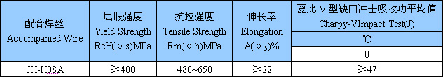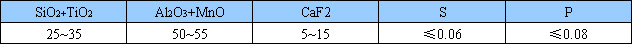 JH-SJ503,是鋁鈦型酸性燒結(jié)焊劑,堿度約0.7. 呈灰色圓形顆粒,粒度為14~60目(約1.18~0.28mm)可直流兩用,采用直流電源焊接時焊絲接正極。電弧穩(wěn)定、焊縫成形美觀,脫渣容易熔敷金屬具有優(yōu)良的力學(xué)性能。 用途:配合H08A,H08MnA等焊絲,主要用于焊接低碳鋼及某些低合金鋼結(jié)構(gòu)。適用于中等厚度的鋼板結(jié)構(gòu)?捎糜诙嗟篮,單絲焊和多絲焊。 焊劑化學(xué)成分:(%)