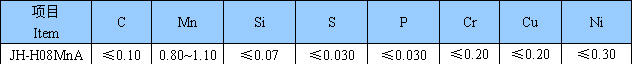 JH-H08MnA是鍍銅的低碳結(jié)構(gòu)鋼埋弧焊絲,配合埋弧焊劑(特別是JH-SJ301、JHSJ101G,JH-SJ101q等系列燒結(jié)焊劑)進行埋弧焊接,熔敷金屬具有優(yōu)良的力學性能。